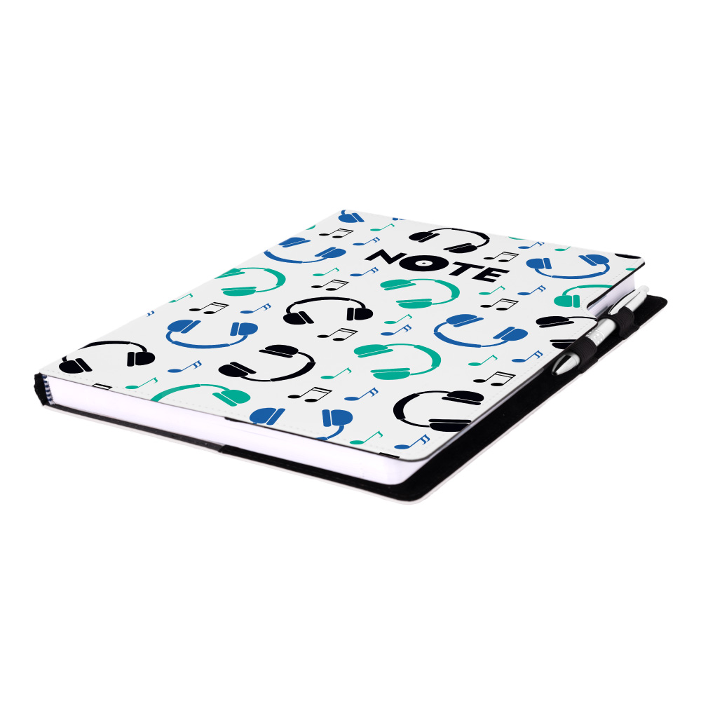 Súčasťou notesu je pútko pre pero a kovová propiska.