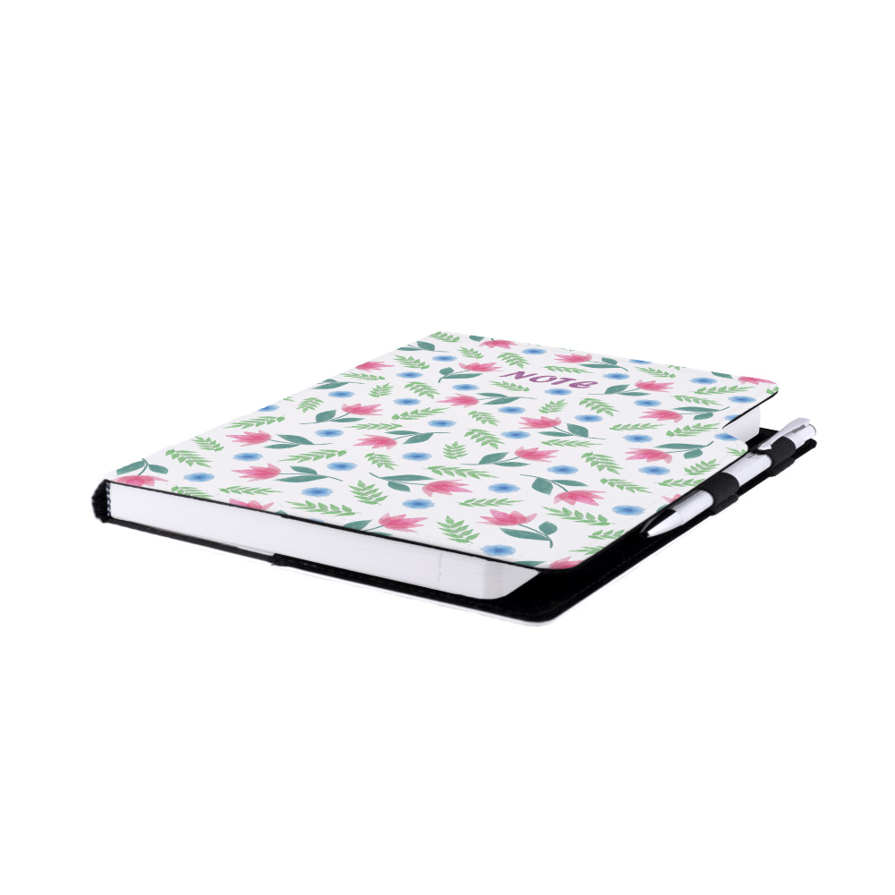 Súčasťou notesu je pútko pre pero a kovová propiska.