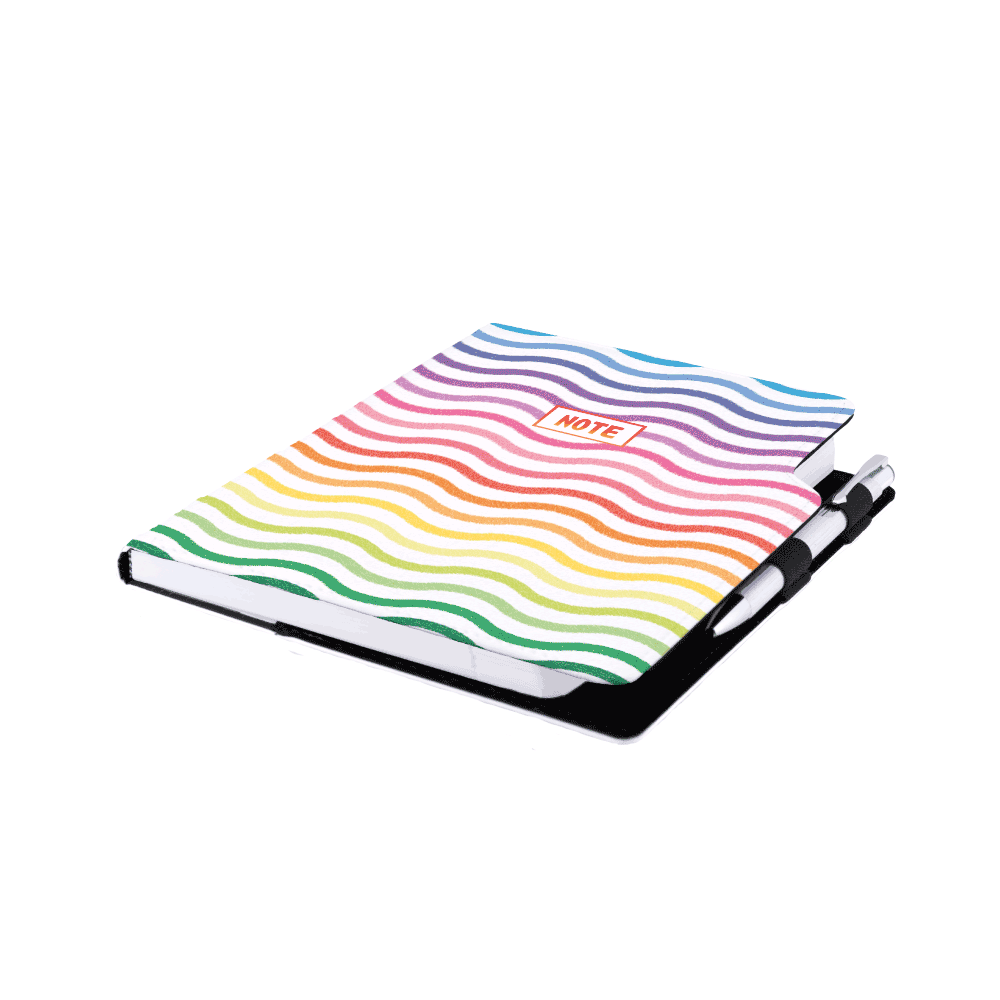 Súčasťou notesu je pútko pre pero a kovová propiska.