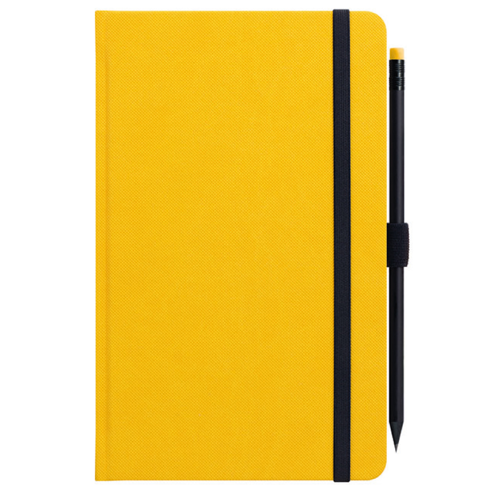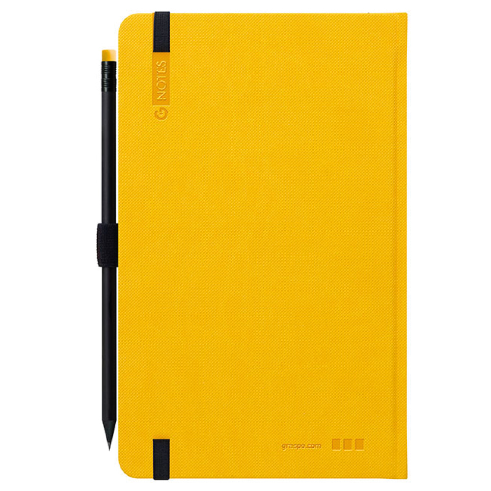 Notes obsahuje gumičku na zatváranie, papierovú kapsu,