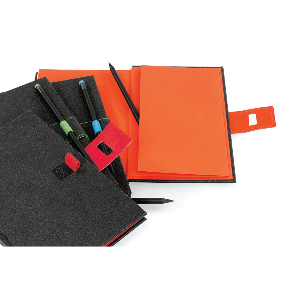 Notes obsahuje papierovú kapsu, pútko na ceruzku