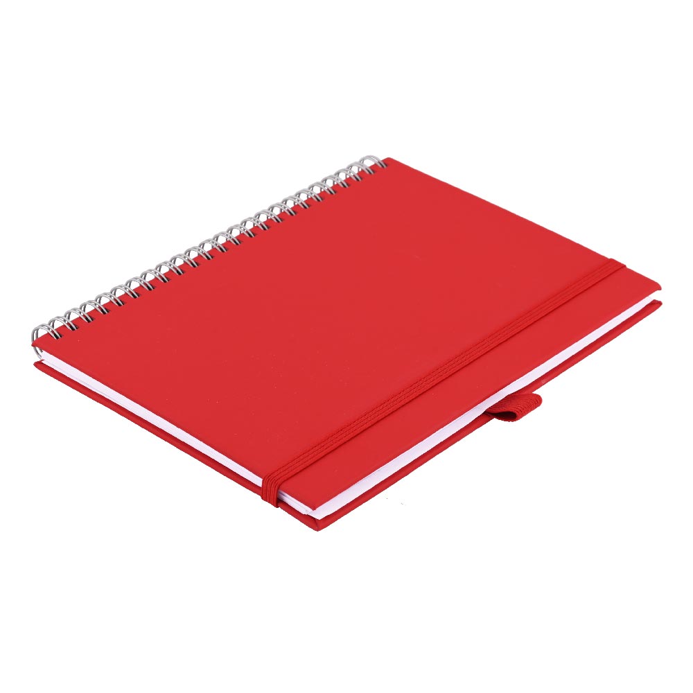 Notes koženkový SIMPLY A5 linajkový - červená/strieborná špirála
