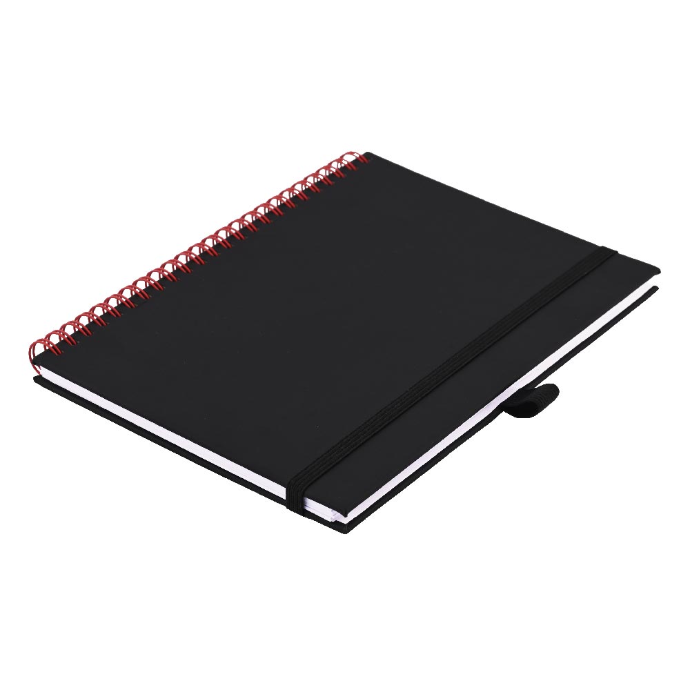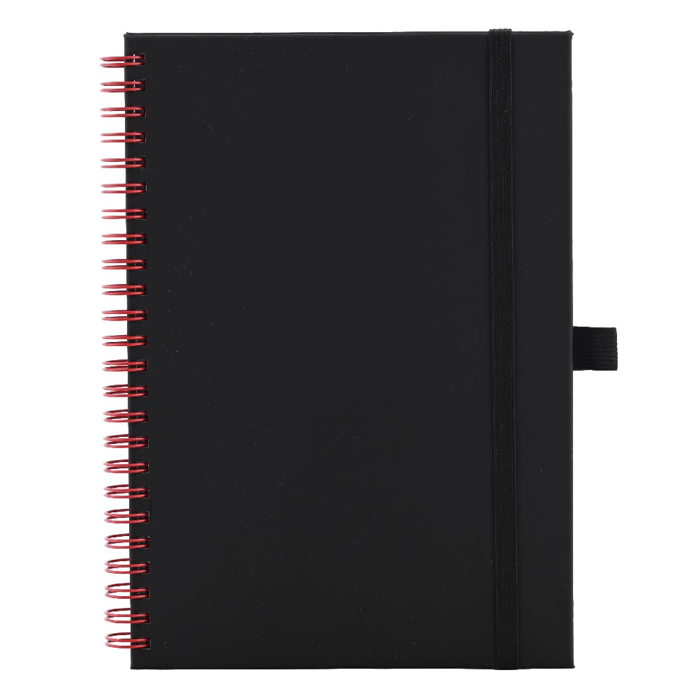 Notes koženkový SIMPLY A5 linajkový - čierna/červená špirála