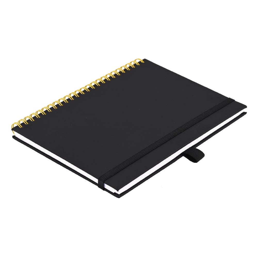 Notes koženkový SIMPLY A5 linajkový - čierna/žltá špirála