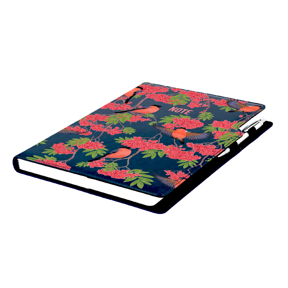 Súčasťou notesu je pútko pre pero a kovová propiska.