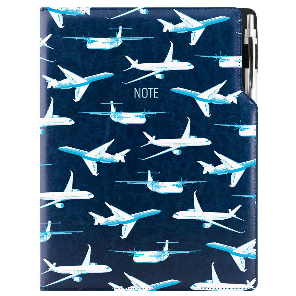 Notes - zápisník DESIGN A4 bodkovaný - modrá - lietadlá