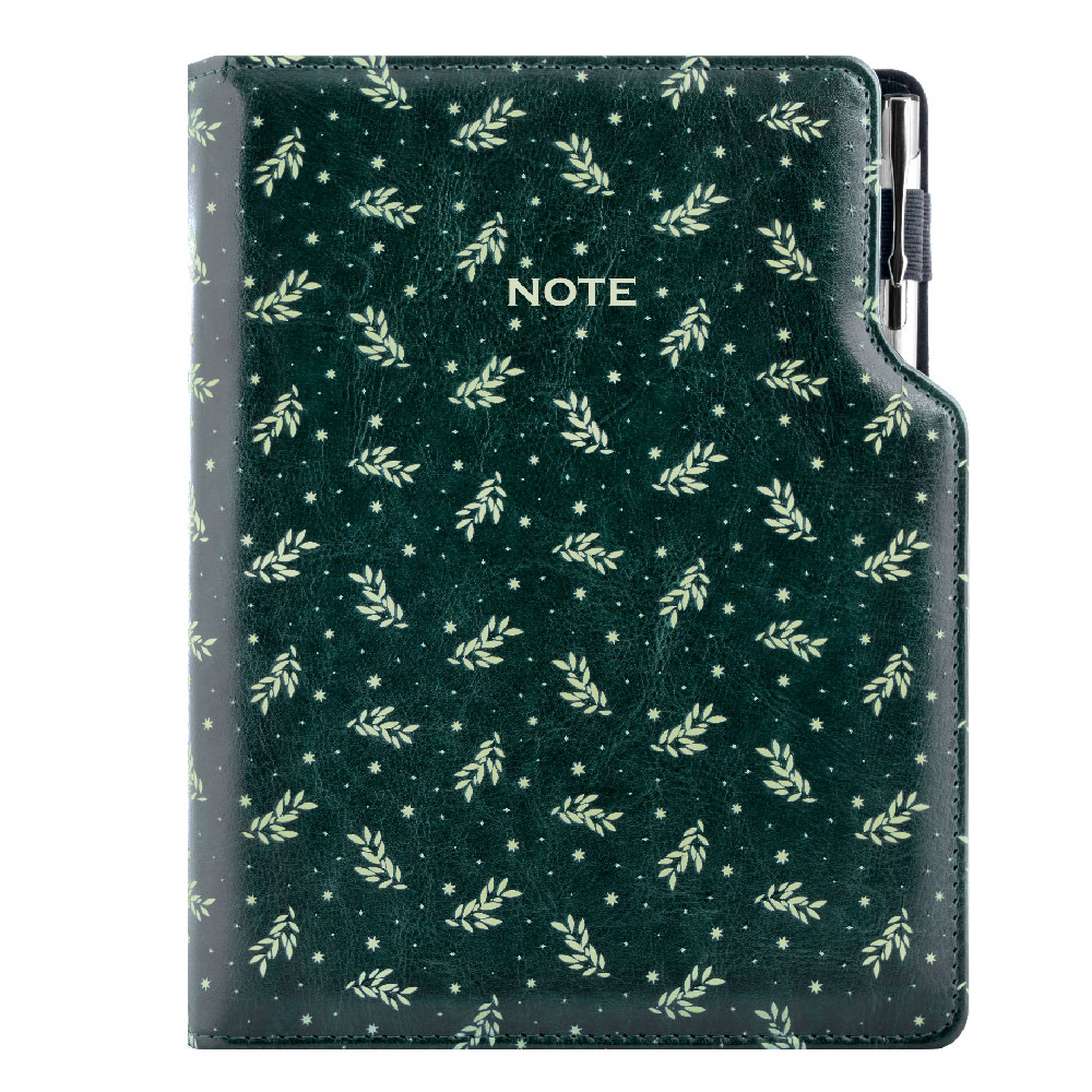 Súčasťou notesu je pútko pre pero a kovová propiska.