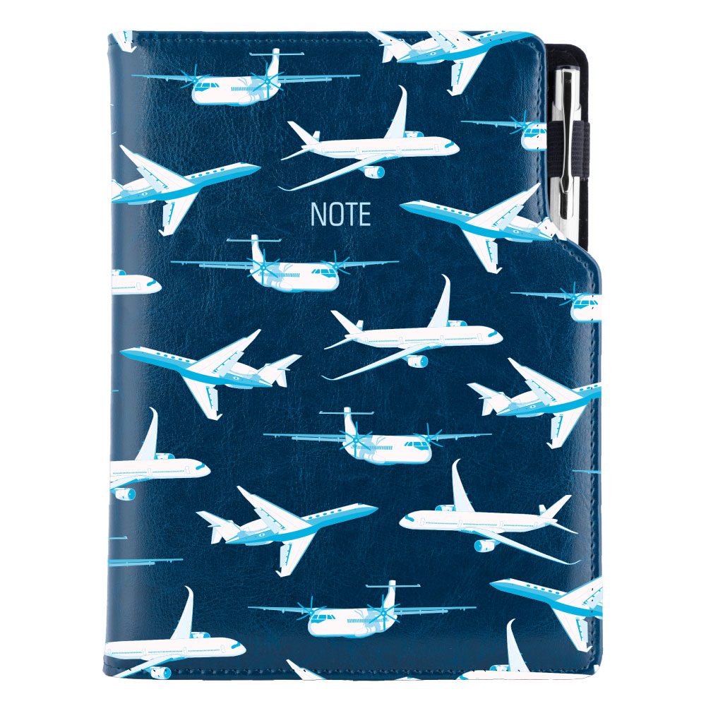 Notes - zápisník DESIGN A5 bodkovaný - modrá - lietadlá