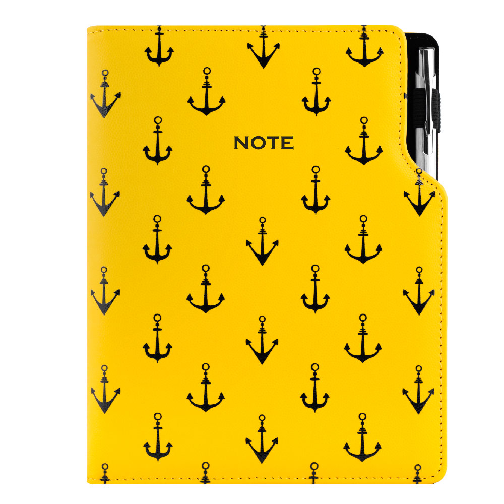 Notes - zápisník DESIGN A5 bodkovaný - žltá - námorník - kotvy