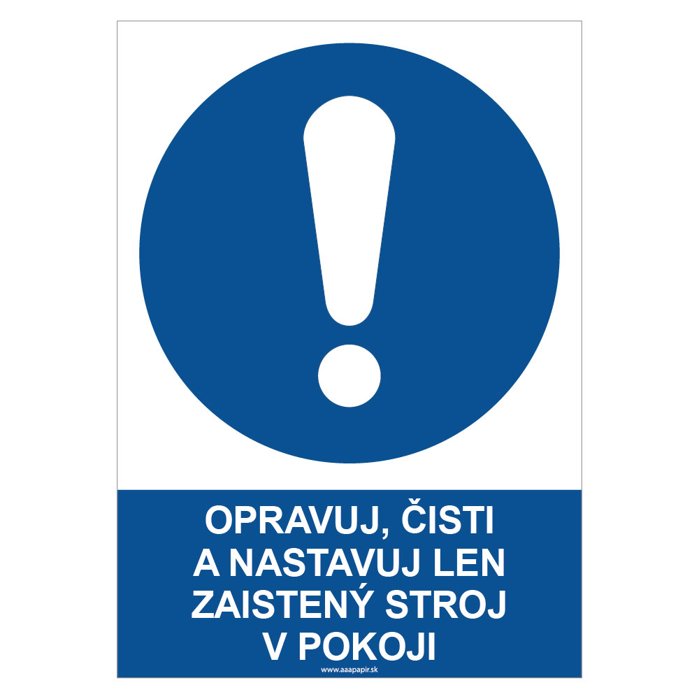 Opravuj, čisti a nastavuj len zaistený stroj v pokoji - bezpečnostná tabuľka, plast 0,5 mm - A4