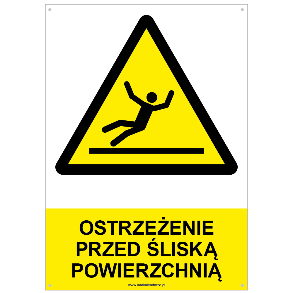 OSTRZEŻENIE PRZED ŚLISKĄ POWIERZCHNIĄ - znak BHP z dziurkami, płyta PVC A4, 2 mm
