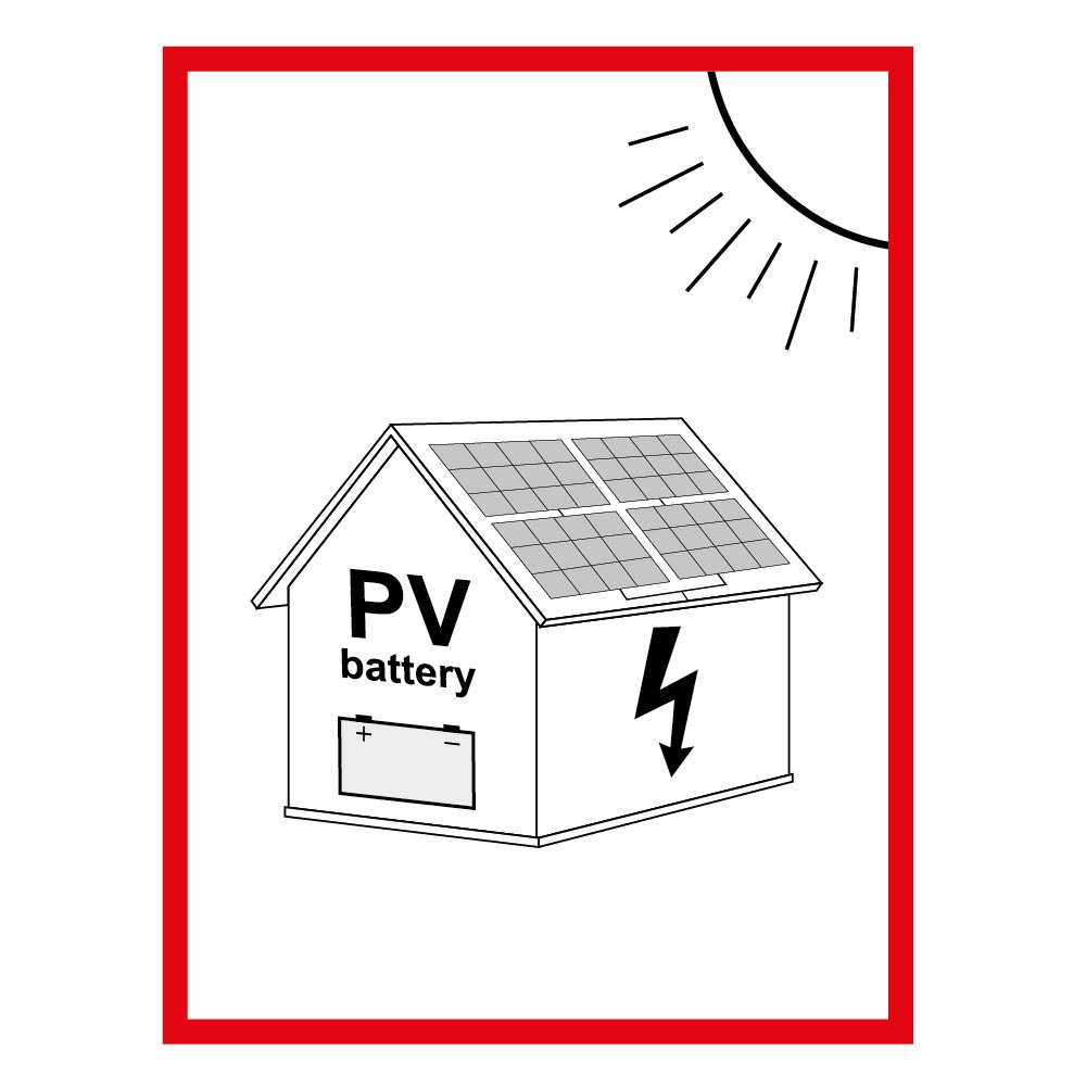 Označenie FVE na budove s batériou - PV symbol - bezpečnostná tabuľka, samolepka (A6) 105 x 148 mm