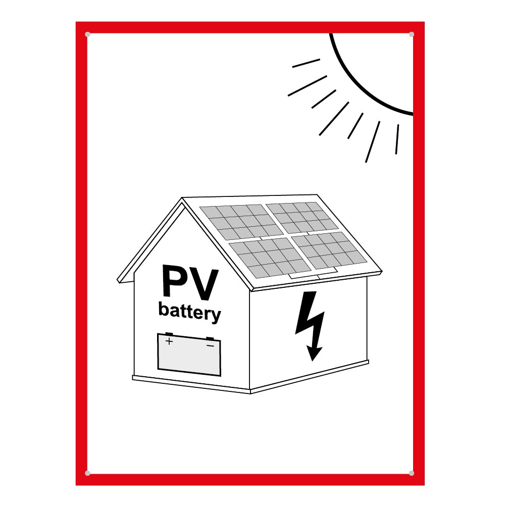 Označenie FVE na budove s batériou - PV symbol - bezpečnostná tabuľka, plast 0,5 mm (A6) 105 x 148 mm