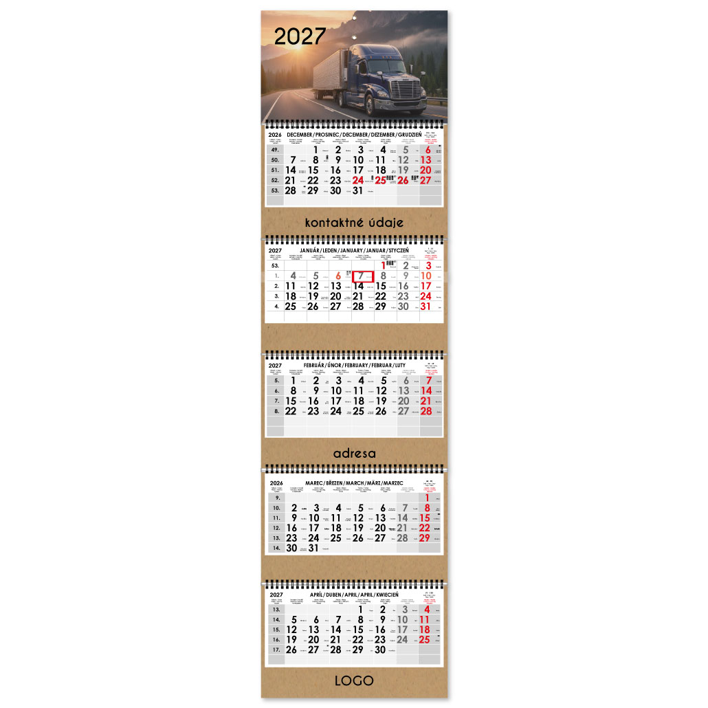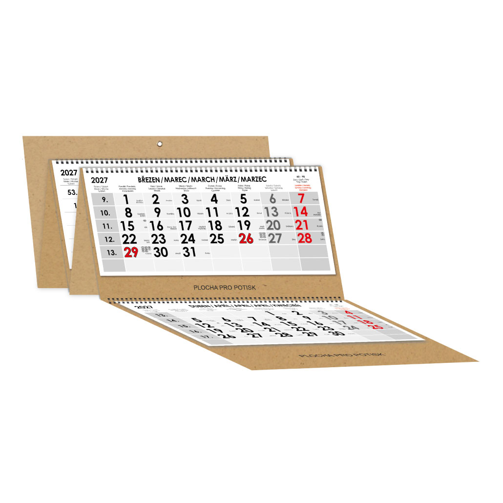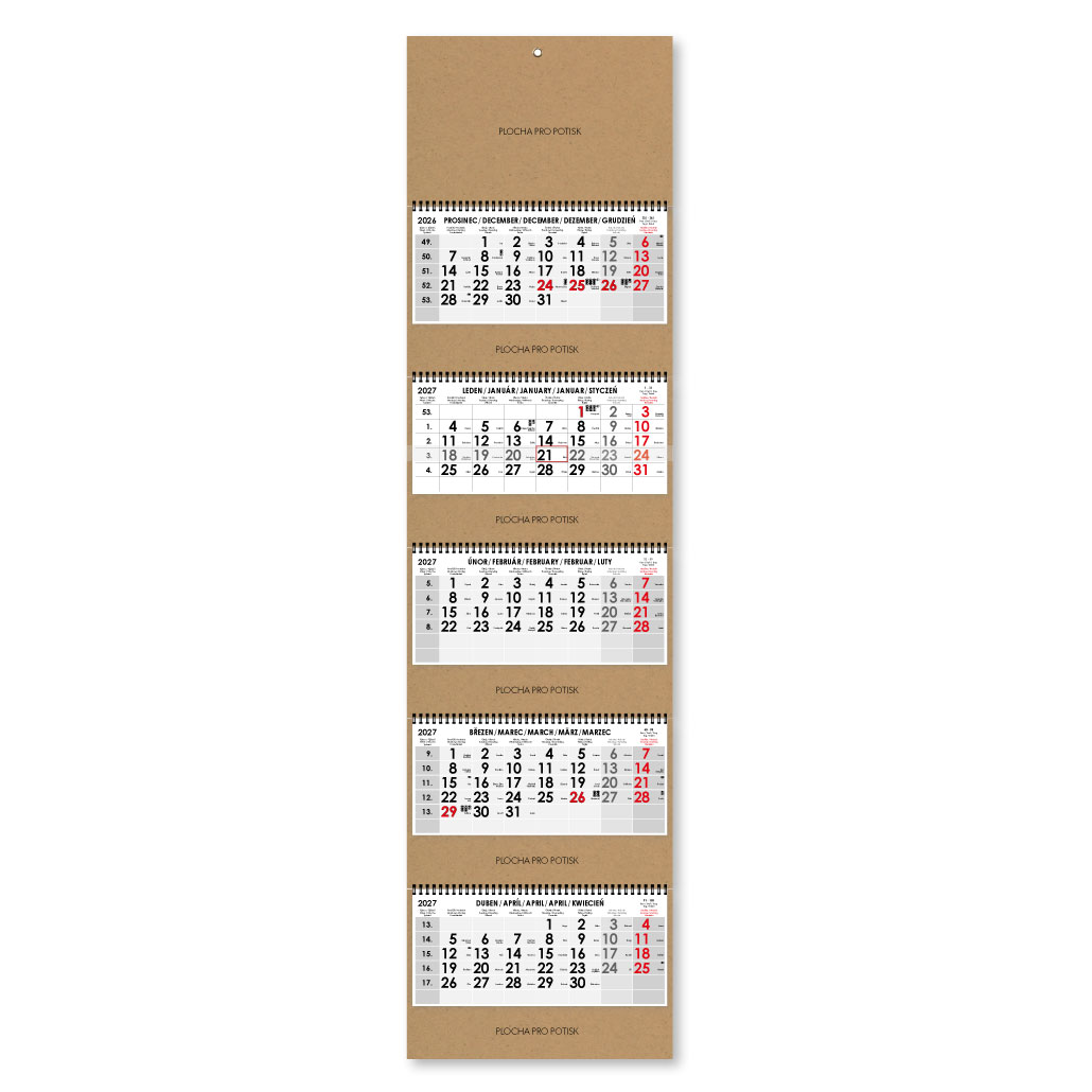 Päťmesačný kalendár Kvinto Kraft skládaný český so špirálou 2027 - sivý