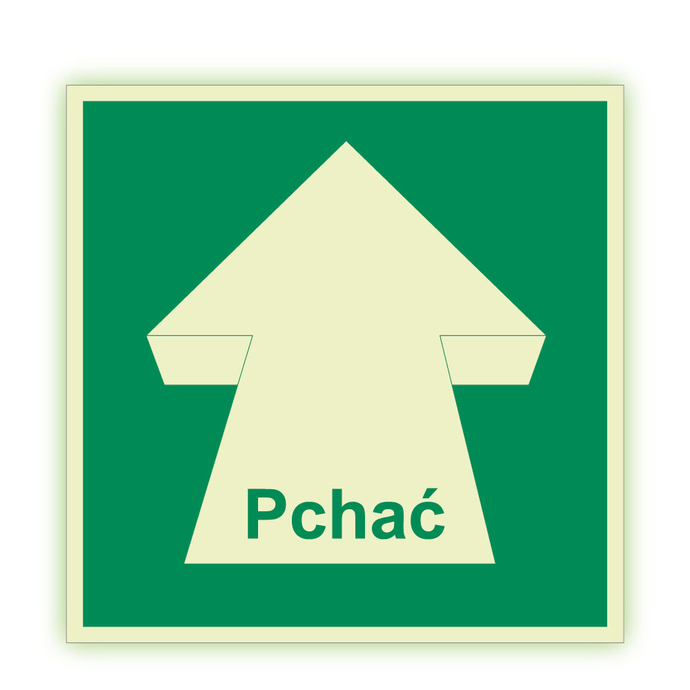 Pchać - fotoluminescencyjny znak, płyta PVC 2 mm 100x100 mm