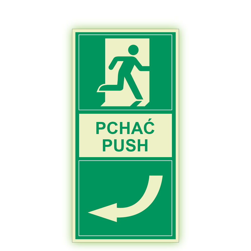 Pchać w lewo - fotoluminescencyjny znak, naklejka 100x200 mm