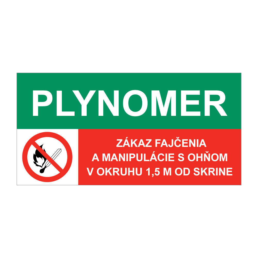 Plynomer-Zákaz fajčenia a manipulácie s ohňom v okruhu 1,5m od skrine, kombinácia,plast 1mm,150x75mm