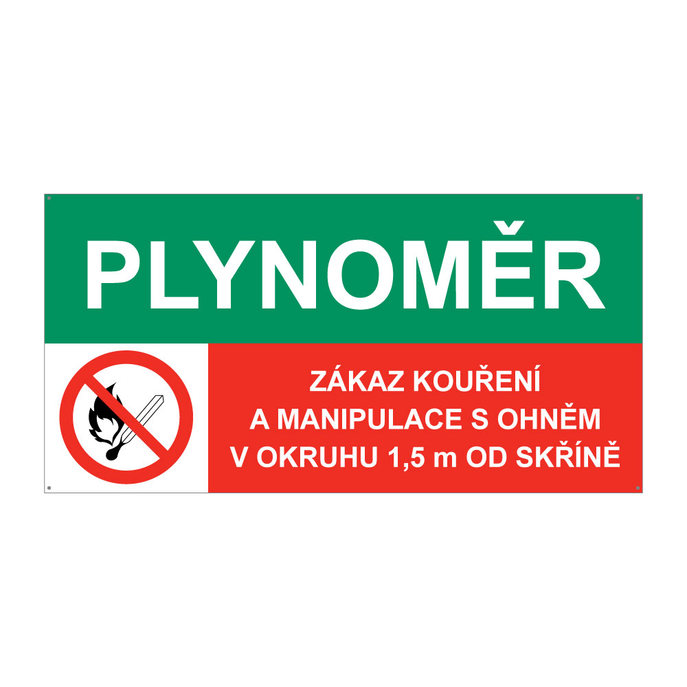 PLYNOMĚR - ZÁKAZ KOUŘENÍ A MANIPULACE S OHNĚM V OKRUHU 1,5 M OD SKŘÍNĚ, KOMBINACE, plast 1 mm, 150x75 mm