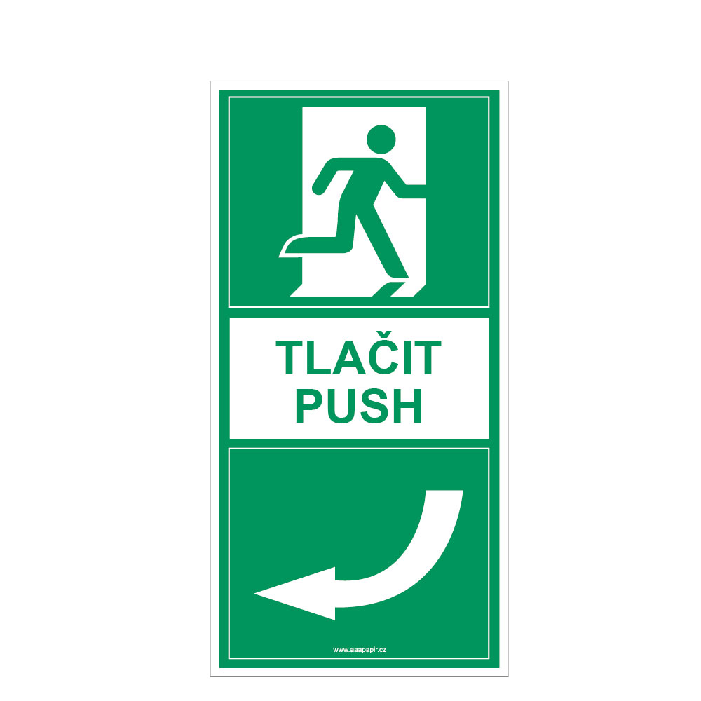 Pod kliku dveří - Tlačit - Vlevo - bezpečnostní tabulka, samolepka 100x200 mm