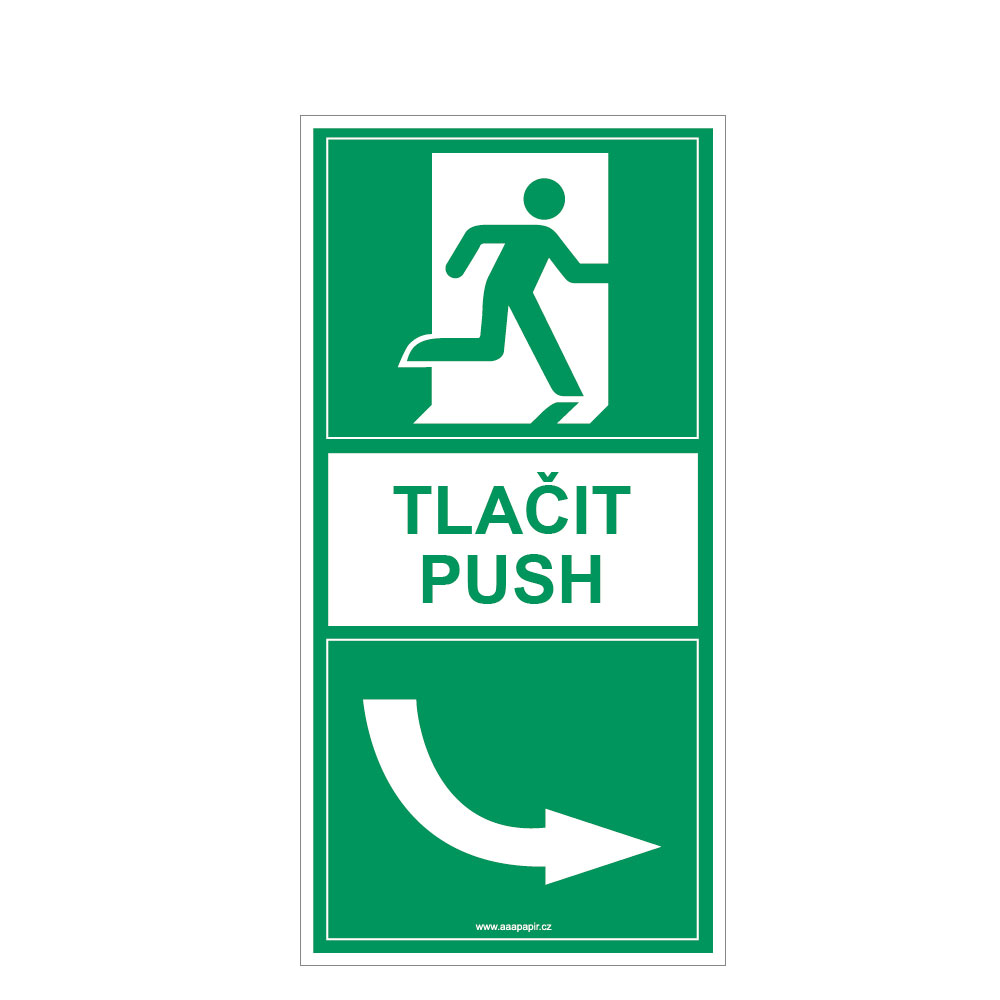 Pod kliku dveří - Tlačit - Vpravo - bezpečnostní tabulka, samolepka 100x200 mm