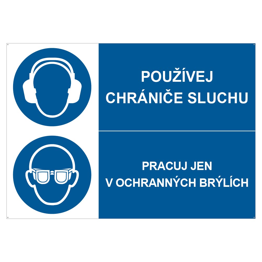 POUŽÍVEJ CHRÁNIČE SLUCHU - PRACUJ JEN V OCHRANNÝCH BRÝLÍCH, KOMBINACE, plast 2 mm, A4