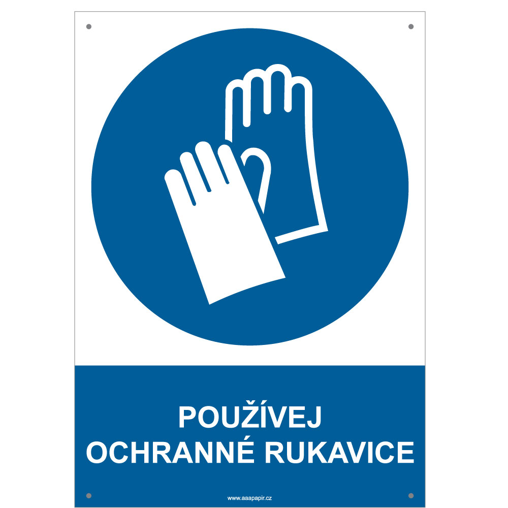 POUŽÍVEJ OCHRANNÉ RUKAVICE - bezpečnostní tabulka s dírkami, plast A4, 2 mm