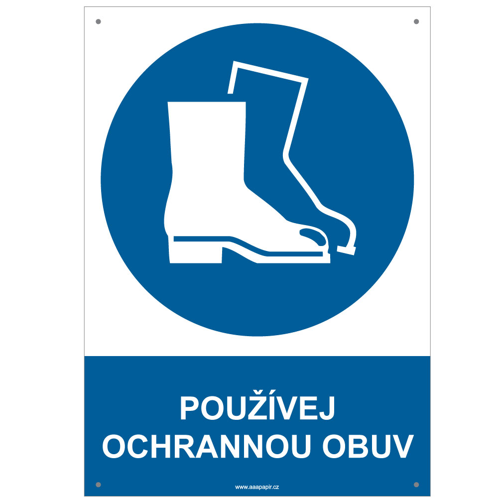 POUŽÍVEJ OCHRANNOU OBUV - bezpečnostní tabulka s dírkami, plast A4, 2 mm