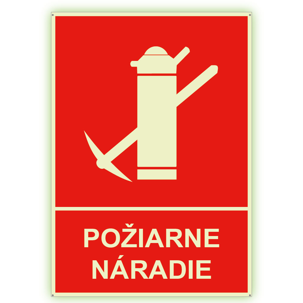 Požiarne náradie s textom - fotoluminiscenčná tabuľka, samolepka 148x210 mm