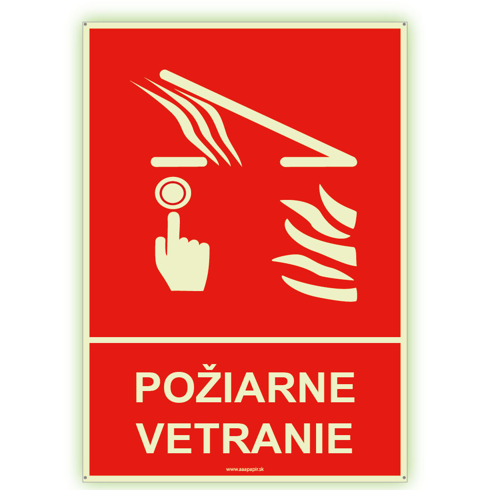 Požiarne vetranie s textom - fotoluminiscenčná tabuľka, samolepka 148x210 mm