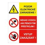 Pozor el. zariadenie-Nehas vodou-Vstup zakázaný, kombinácia,plast 1mm,210x297mm
