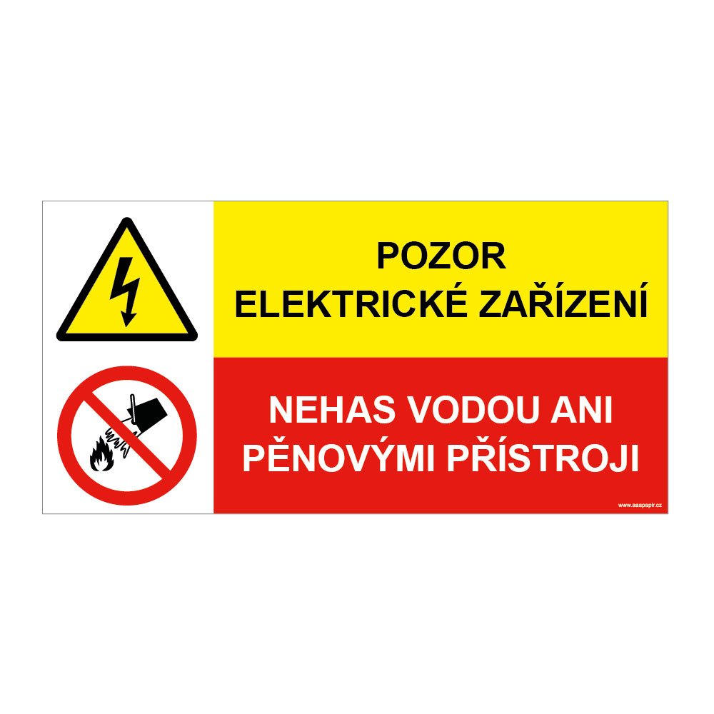 POZOR ELEKTRICKÉ ZAŘÍZENÍ - NEHAS VODOU, KOMBINACE, plast 2 mm, 297x210 mm
