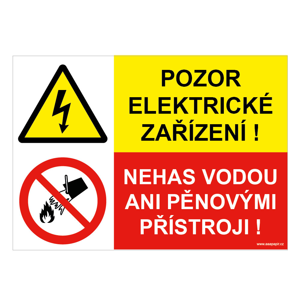 POZOR ELEKTRICKÉ ZAŘÍZENÍ - NEHAS VODOU, KOMBINACE, plast 1 mm, 297x210 mm