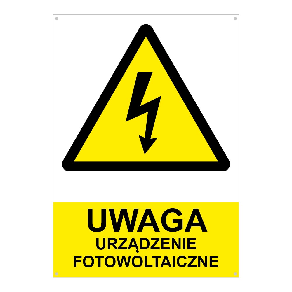 POZOR fotovoltaické zariadenie- bezpečnostná tabuľka, plast 2 mm s dierkami (A4) 210 x 297 mm