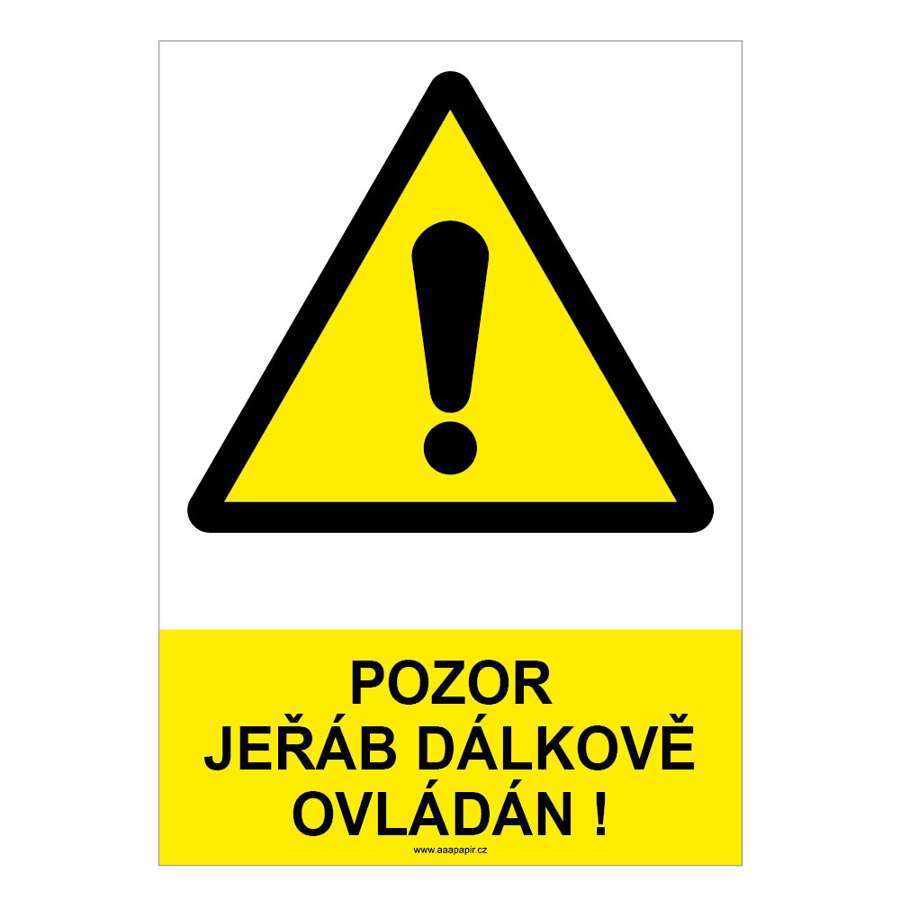 POZOR JEŘÁB DÁLKOVĚ OVLÁDÁN! - bezpečnostní tabulka, plast A4, 2 mm