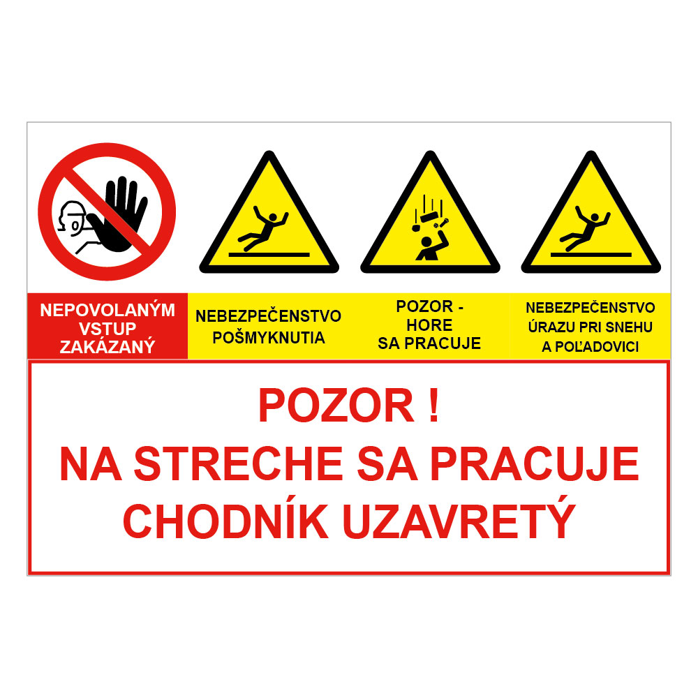 Pozor na streche sa pracuje chodník uzavretý, kombinácia,plast 1mm,210x148mm