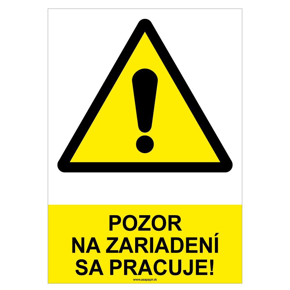 Pozor na zariadení sa pracuje!-bezpečnostná tabuľka, samolepka A4