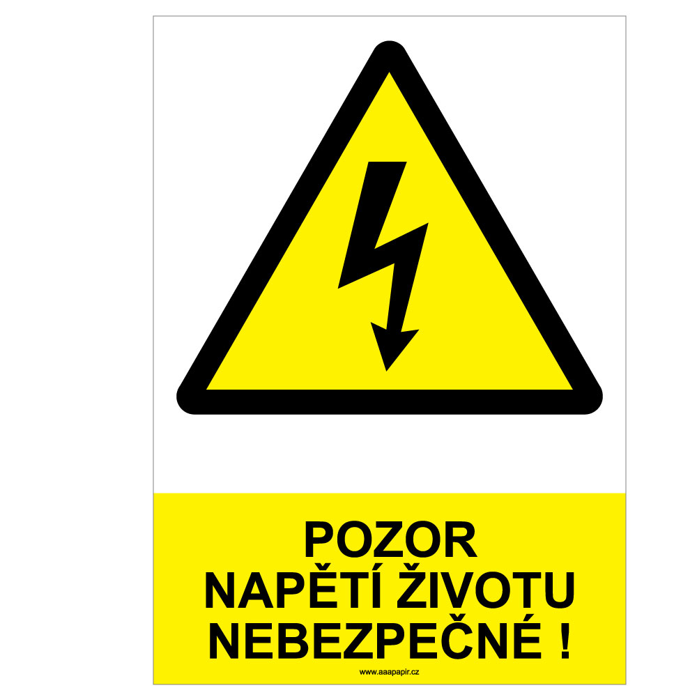 POZOR NAPĚTÍ ŽIVOTU NEBEZPEČNÉ ! - bezpečnostní tabulka, plast A4, 0,5 mm