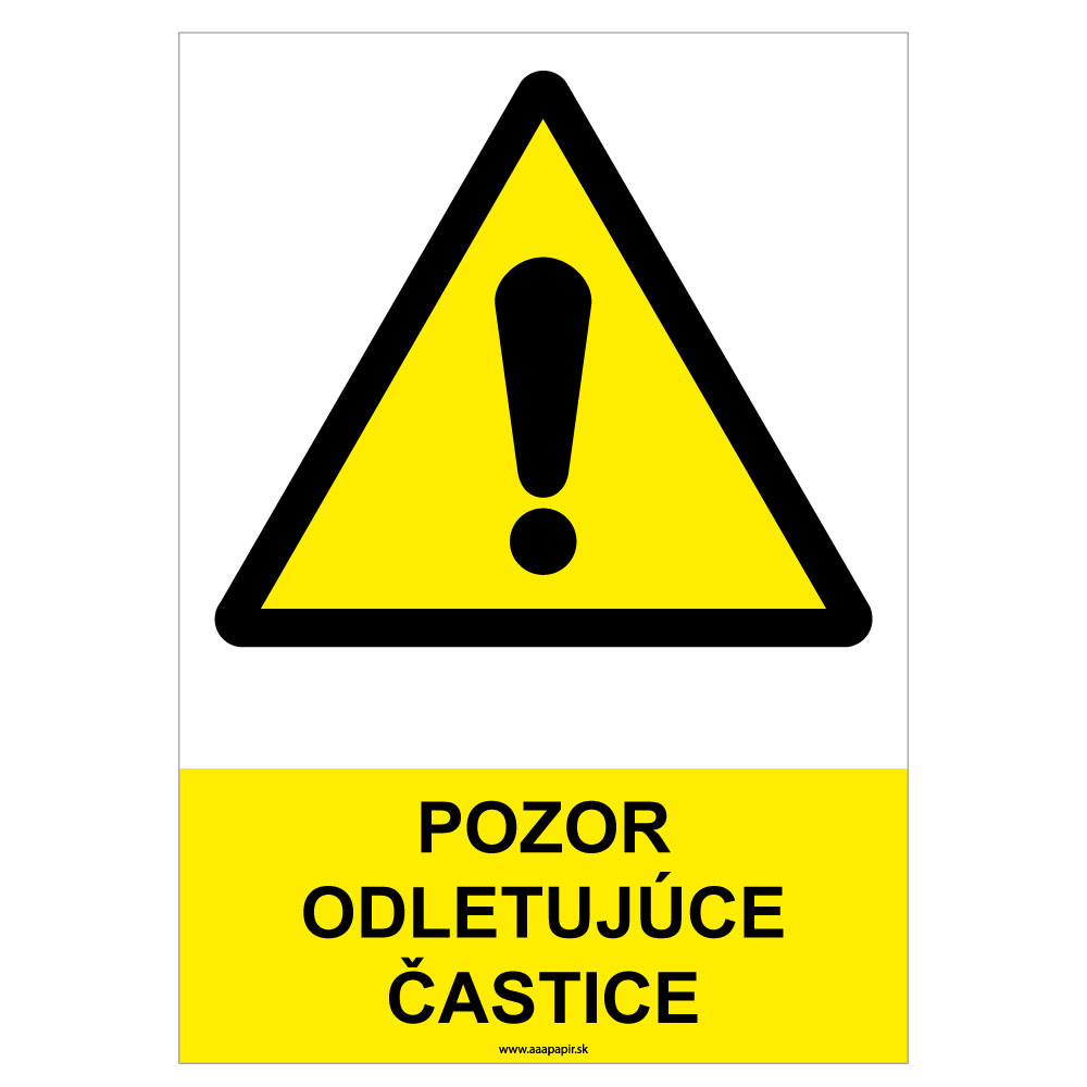 Pozor, odletujúce častice - bezpečnostná tabuľka, plast 2 mm - A4