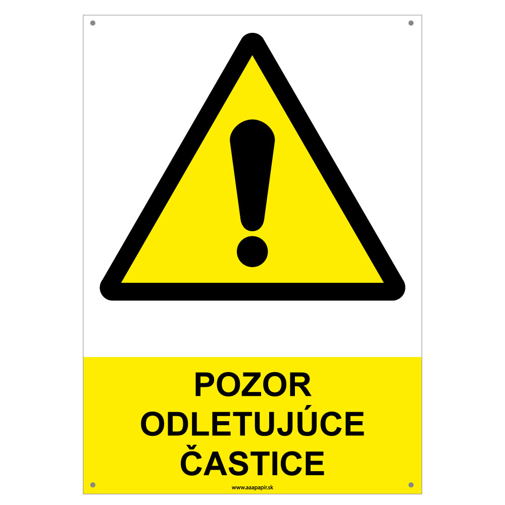 Pozor, odletujúce častice - bezpečnostná tabuľka s dierkami, plast 2 mm - A4