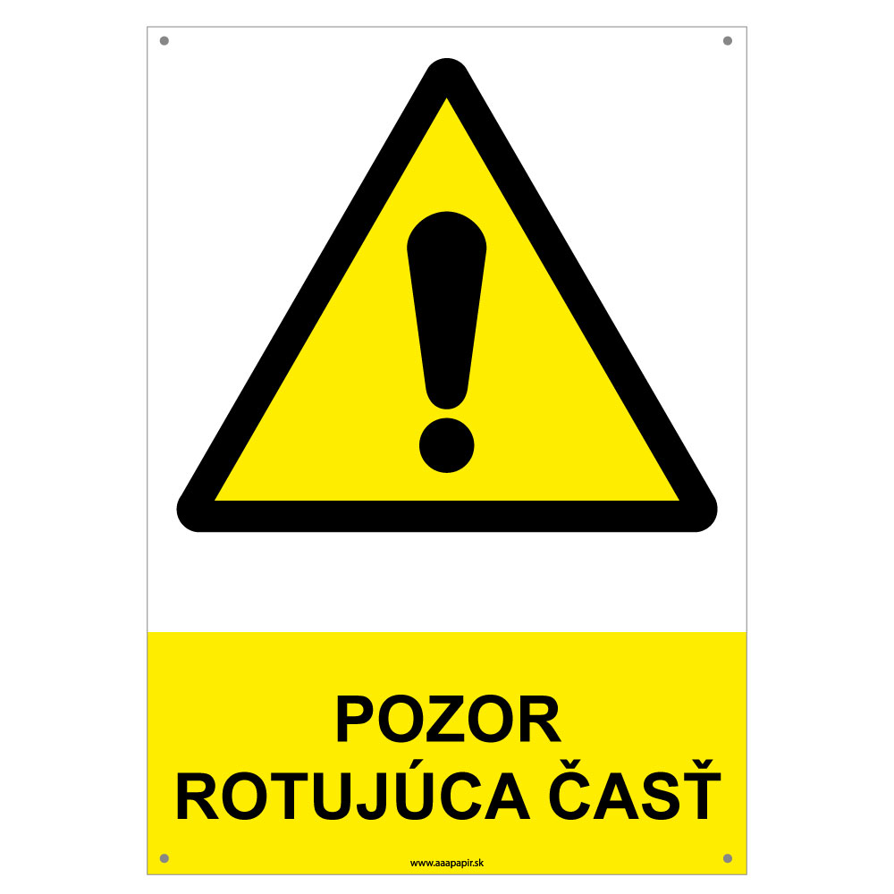 Pozor, rotujúca časť - bezpečnostná tabuľka s dierkami, plast 2 mm - A4