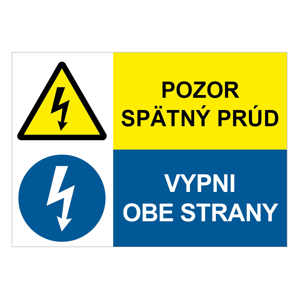 Pozor spätný prúd-Vypni obe strany, kombinácia, samolepka 210x148mm