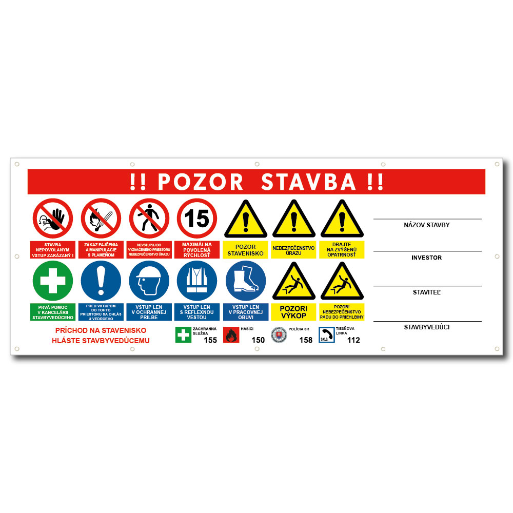 Bezpečnostný banner doplníme Vašim logom a podľa priania Vám doplníme aj osobné údaje (stavbyvedúci, investor atď.).