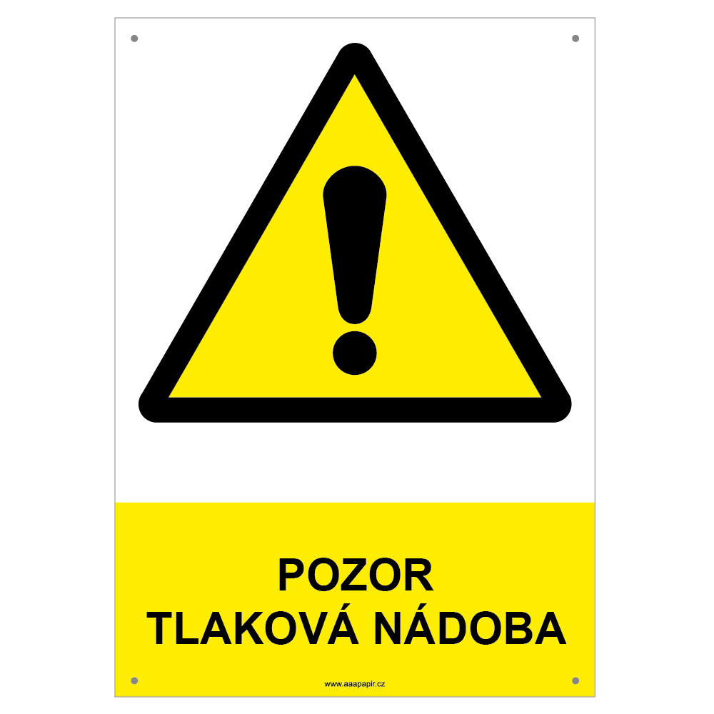 POZOR TLAKOVÁ NÁDOBA - bezpečnostní tabulka s dírkami, plast A4, 2 mm