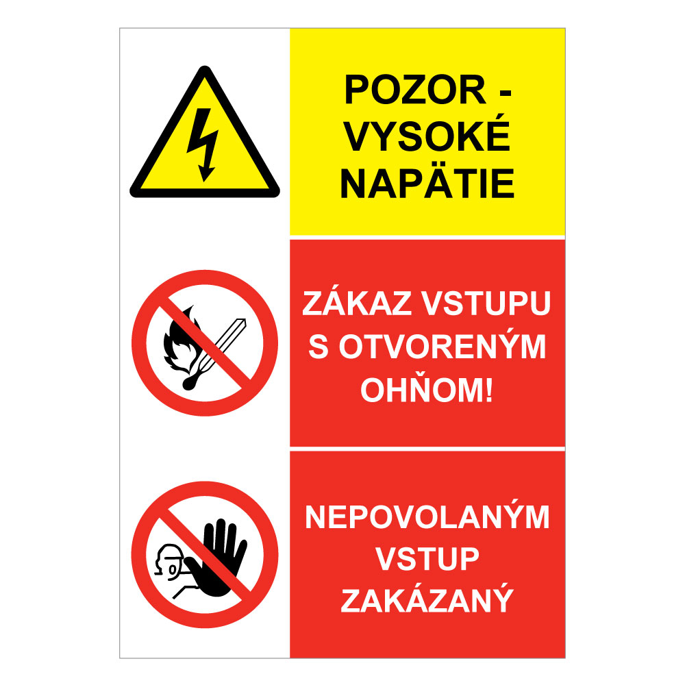 Pozor vysoké napätie-Zákaz vstupu- ??Nepovolaným vstup zakázaný, kombinácia, plast 1mm -210x297mm