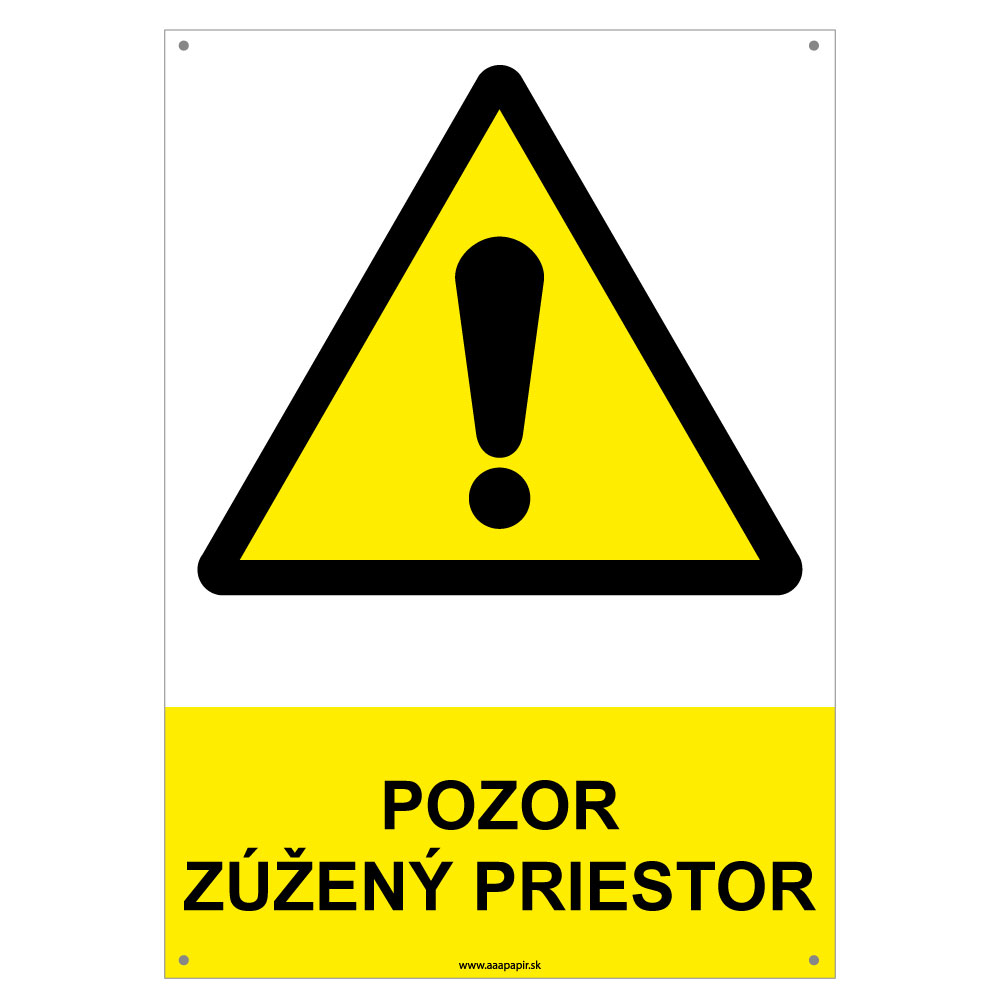 Pozor, zúžený priestor - bezpečnostná tabuľka s dierkami, plast 2 mm - A4