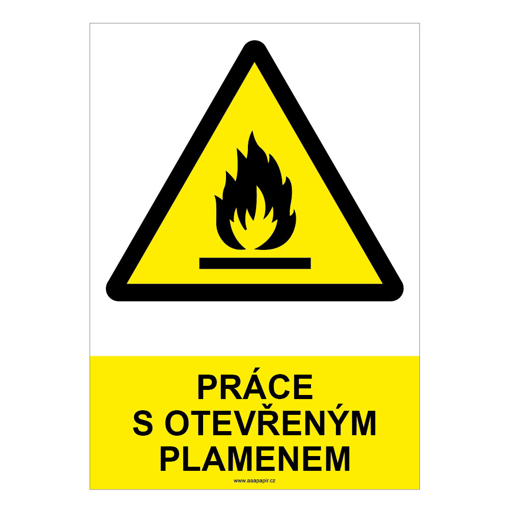 PRÁCE S OTEVŘENÝM PLAMENEM - bezpečnostní tabulka, plast A4, 2 mm
