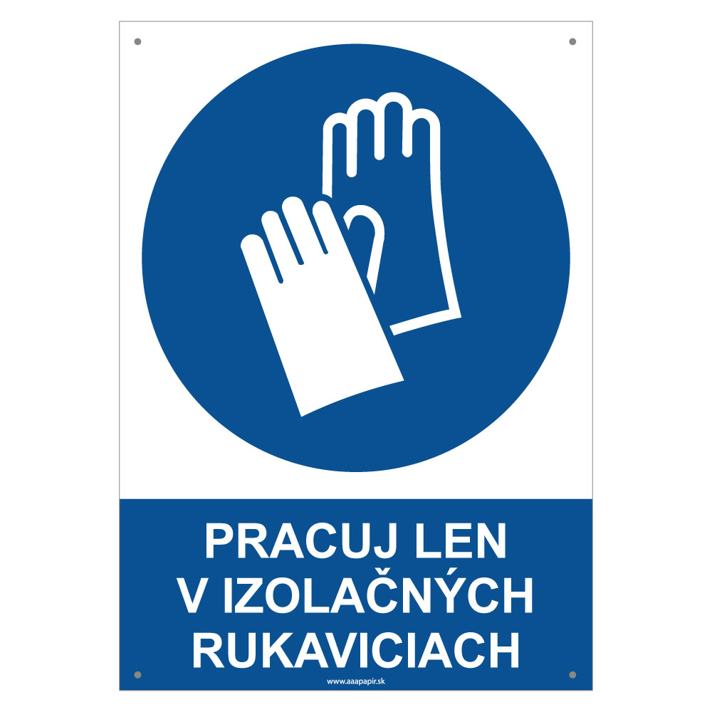 Pracuj len v izolačných rukaviciach - bezpečnostná tabuľka, plast 0,5 mm - A4
