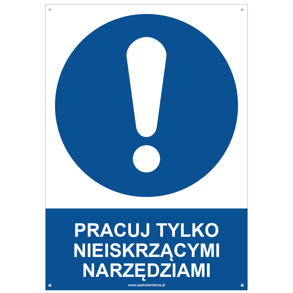 PRACUJ TYLKO NIEISKRZĄCYMI NARZĘDZIAMI - znak BHP z dziurkami, płyta PVC A4, 2 mm