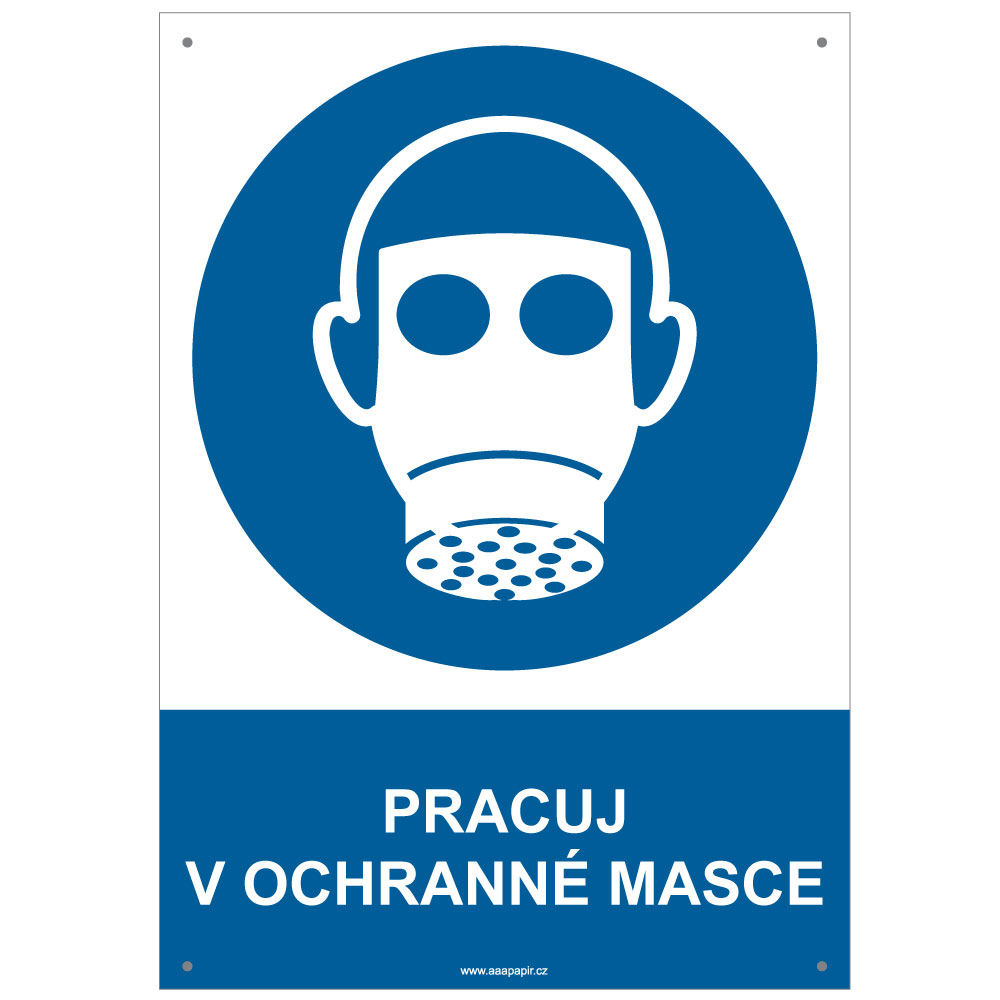 PRACUJ V OCHRANNÉ MASCE - bezpečnostní tabulka s dírkami, plast A4, 2 mm