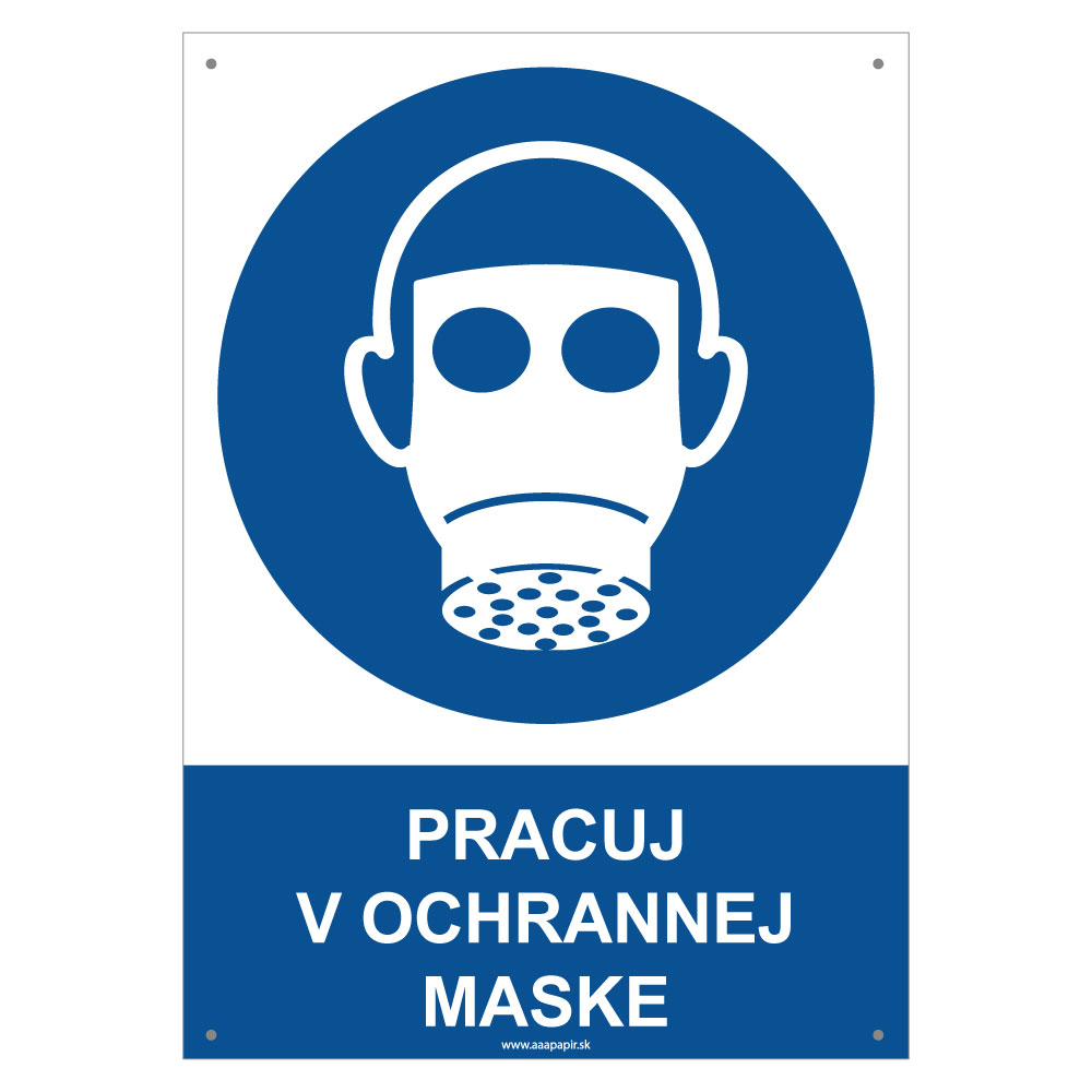 Pracuj v ochrannej maske - bezpečnostná tabuľka s dierkami, plast 2 mm - A4